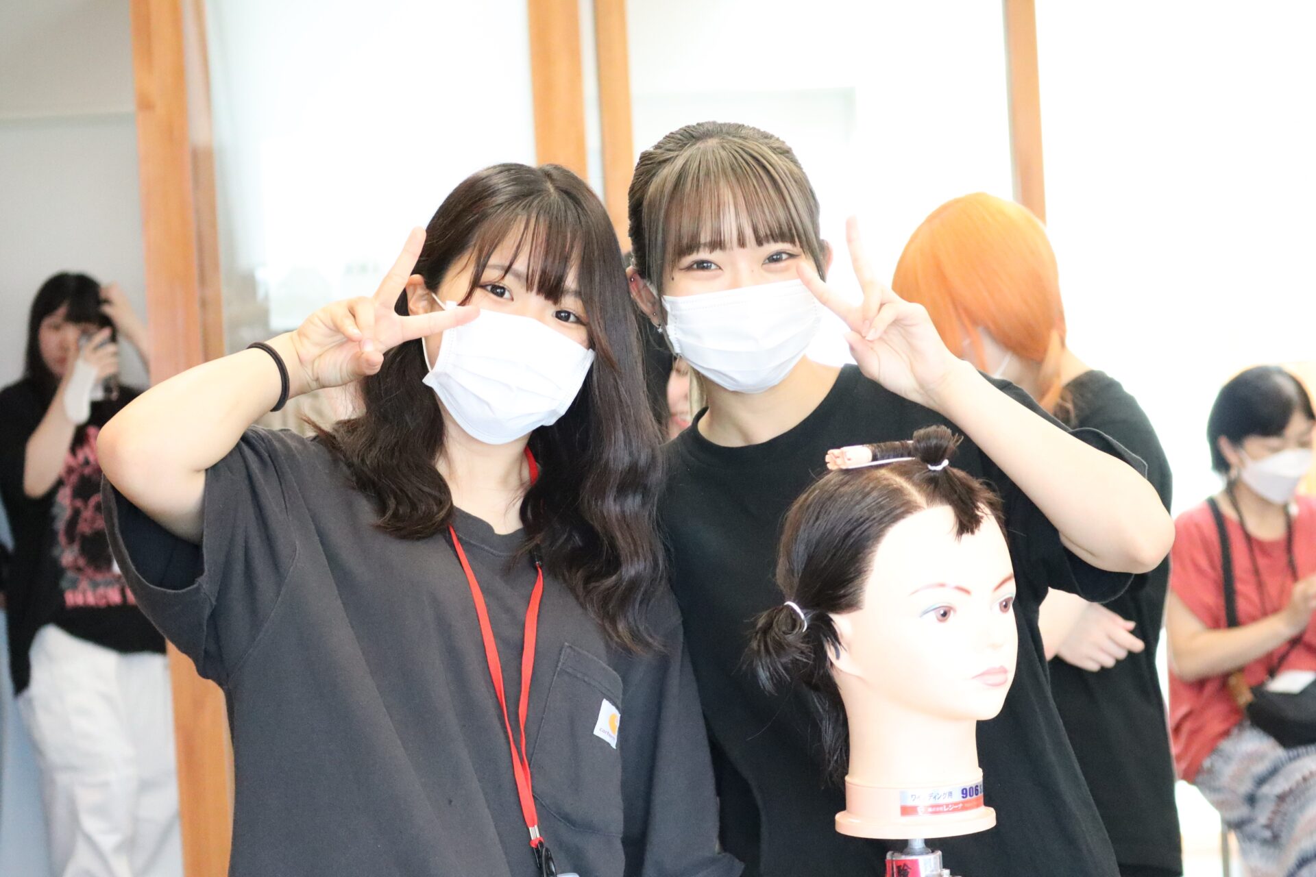 毎年2年生によって開催されるヘアカレ祭は本学で学んだ2年間の集大成のステージ。他にも、練習の成果を発揮する場の「ヘアカレカップ」、さらなるスキルアップと知見を広げる「技術研修旅行」、”ワザ”と”センス”を試すため、年間を通して各種学生技術大会にも積極的に参加しています。