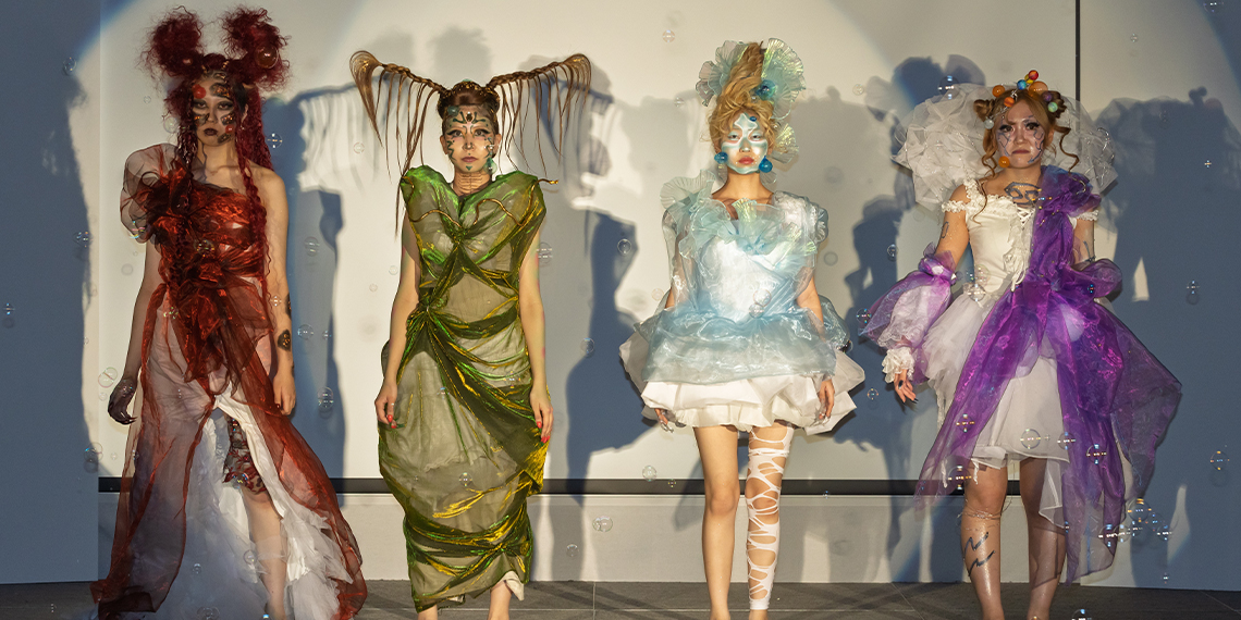 2年生によるヘアメイクショーは、まさにこの学校で学んだ2年間の集大成。ヘアスタイル・メイク・ネイルから衣裳や着付け・舞台構成・演出まで、すべてオリジナルのステージです。