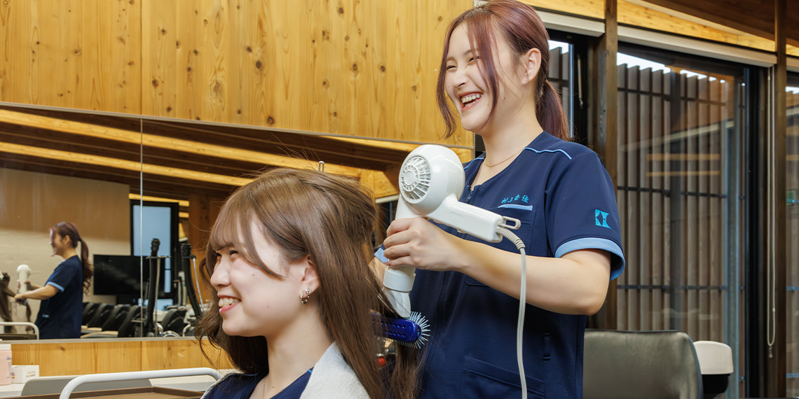 お客様に提供する『癒し』について深い知識とホスピタリティーをエステティックとは別に頭部限定で学んでいきます。全国的に人気の高い「ヘッドスパ」のスキルが習得でき、就職に差が付きます。