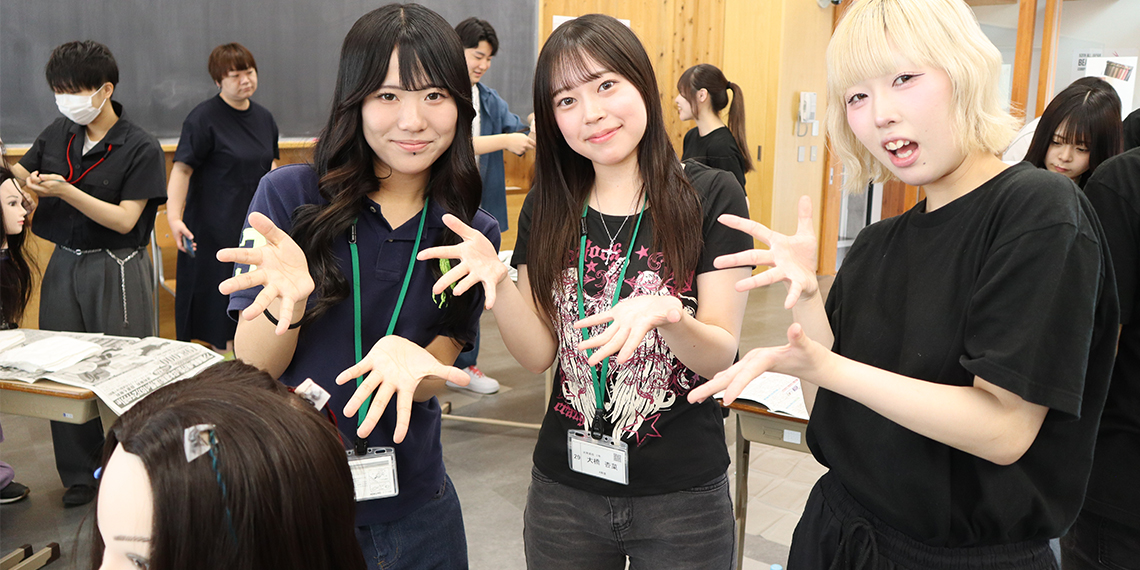 必修コースに加えて、ヘッドヒーリングコース、ネイルコース、着付けコース、エステティックコース、メイクアップコース、カットカラーコースの6種類からコース選択を行います。1・2年次でそれぞれ1コースずつ選択でき、希望によりもう1コース追加で学べるため、2年間で最大4コースを選択することも可能。様々な資格を取得することでより多くの専門知識を身につけることができます。
